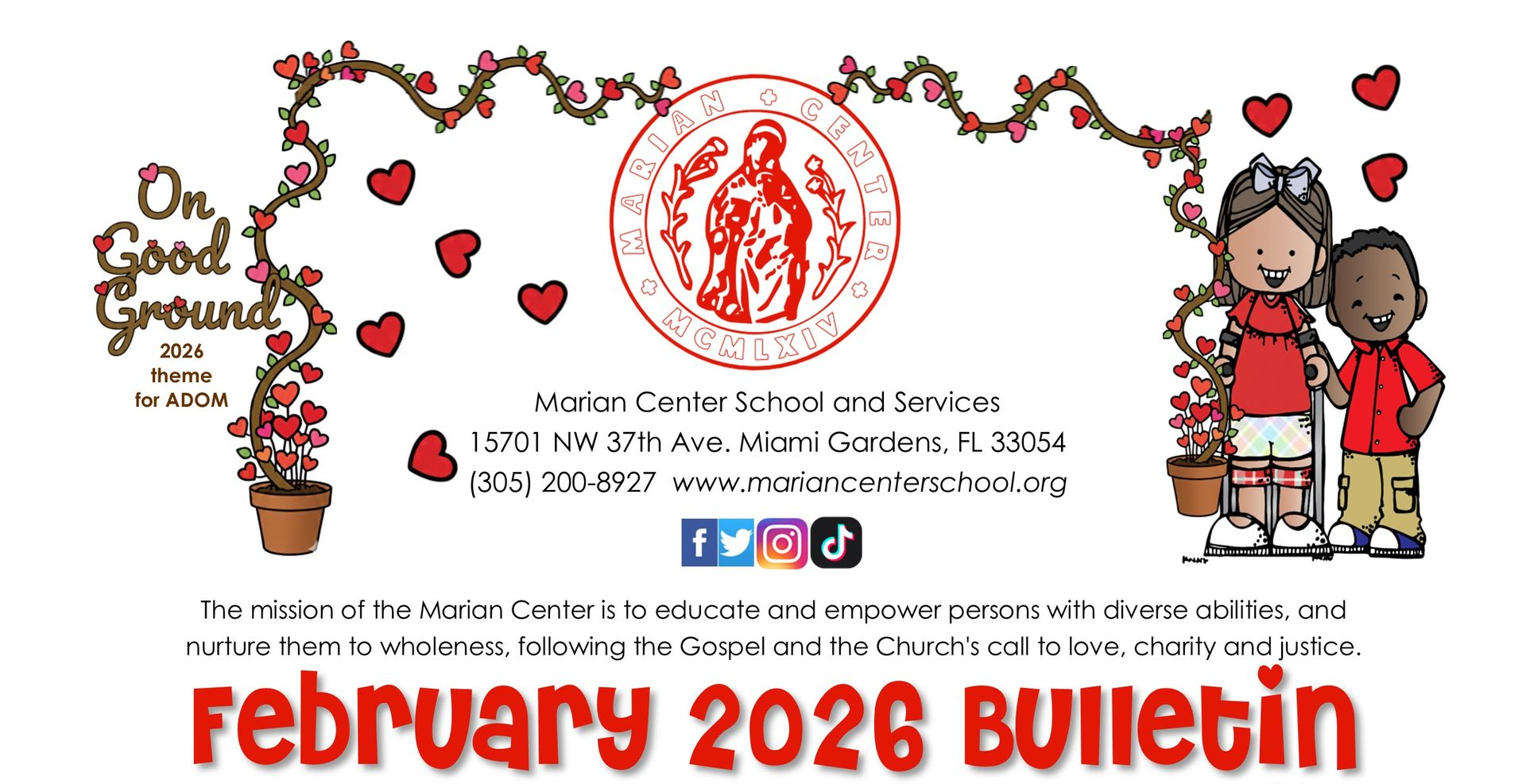 The mission of the Marian Center is to educate and empower persons with diverse abilities, and nurture them to wholeness, following the Gospel and the Church's call to love, charity and justice.